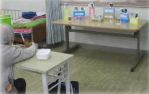 鬼退治のゲームは、「コルク」を「豆」に見立てた「射的」を行ないました。射的は皆さんお好きで大盛り上がり。