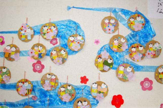 3月号でお伝えしていた、流し雛が完成しました。デイの壁を皆さんの作品でかわいく飾ることができました。何回も見に行かれ「かわいいわ~」と話しておられました。